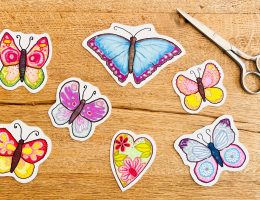 Malt und bastelt mit uns diese einfache Girlande fürs Kinderzimmer! Ihr könnt sie nach euren Wünschen abwandeln und das Material verwenden, das ihr im Haus habt. Los geht’s! Schnappt euch festes Papier, Stifte oder Farbe und entwerft farbenfrohe Schmetterlinge in euren Lieblingsfarben! Wir haben 300g Aquarell-Papier verwendet und die Promarker von Winsor & Newton… nur …