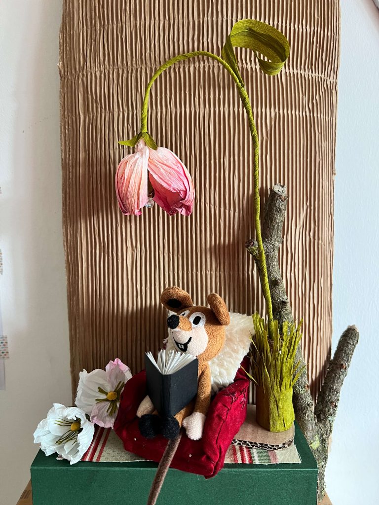 Kreative Idee für Kinder: Diesen Winter haben wir aus einer Papierblume sogar eine „Leselampe“ für ein kleines Kuschel-Tierchen gebastelt!