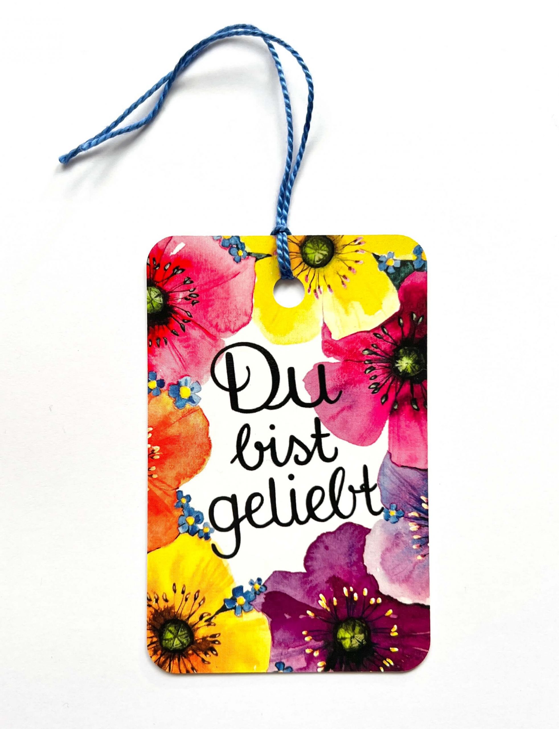 „Du bist geliebt“ – Eine wunderbare Botschaft für dein nächstes Geschenk! Diese farbenfrohen Anhänger sind ideal für jeden Anlass. Die Vorderseite ist hochglänzend in leuchtenden Farben, die Rückseite ist weiß mit einem kleinem Aufdruck „www.Farbschachtel.de“. Hier ist genügend Platz für ein paar liebe Grußworte. Verschenke Botschaften fürs Herz!