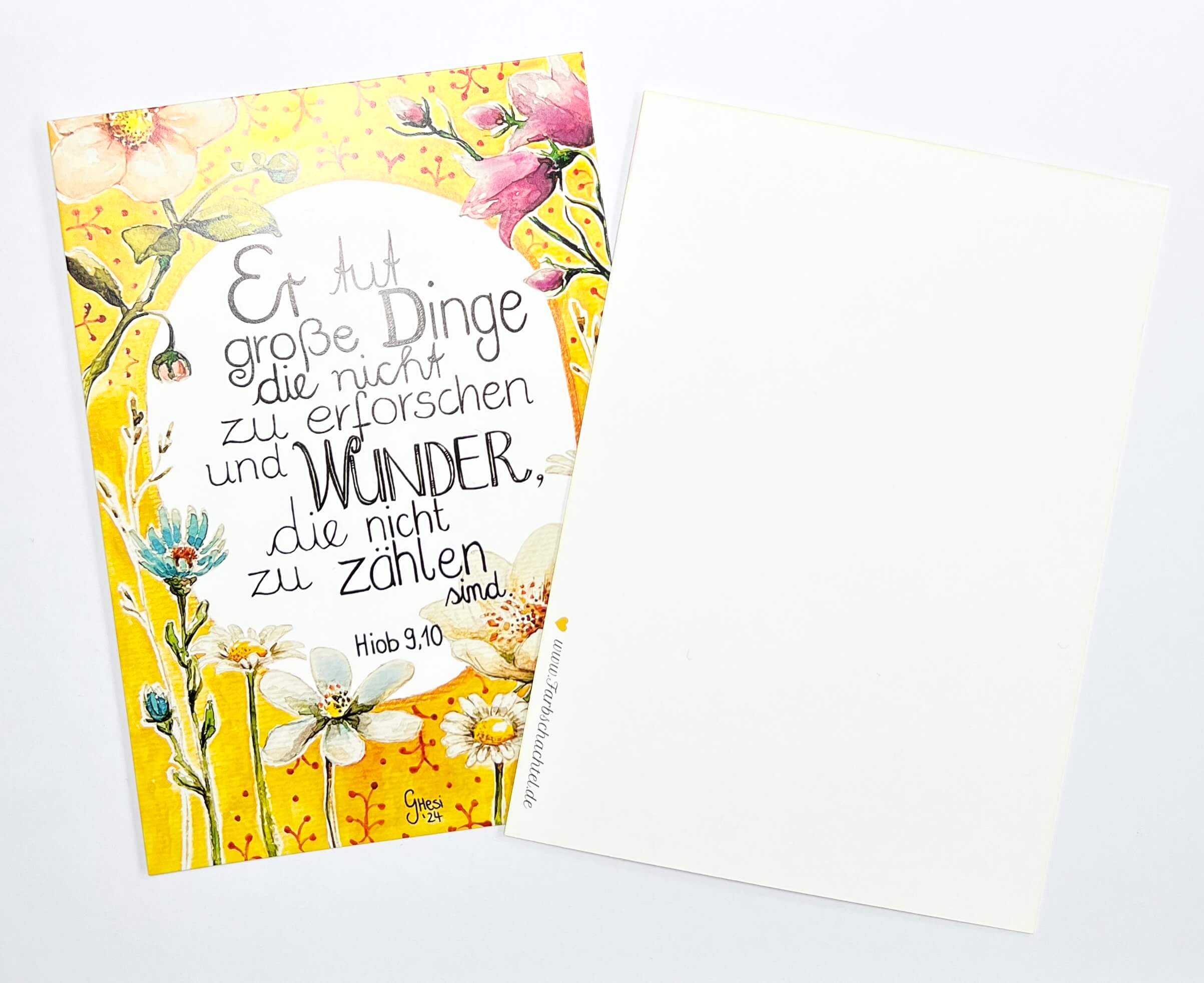 „Er tut große Dinge die nicht zu erforschen und Wunder, die nicht zu zählen sind“ Hiob 9,10. Ab sofort ist diese Bibelvers-Postkarte von Grete Hesemann hier im Shop erhältlich!