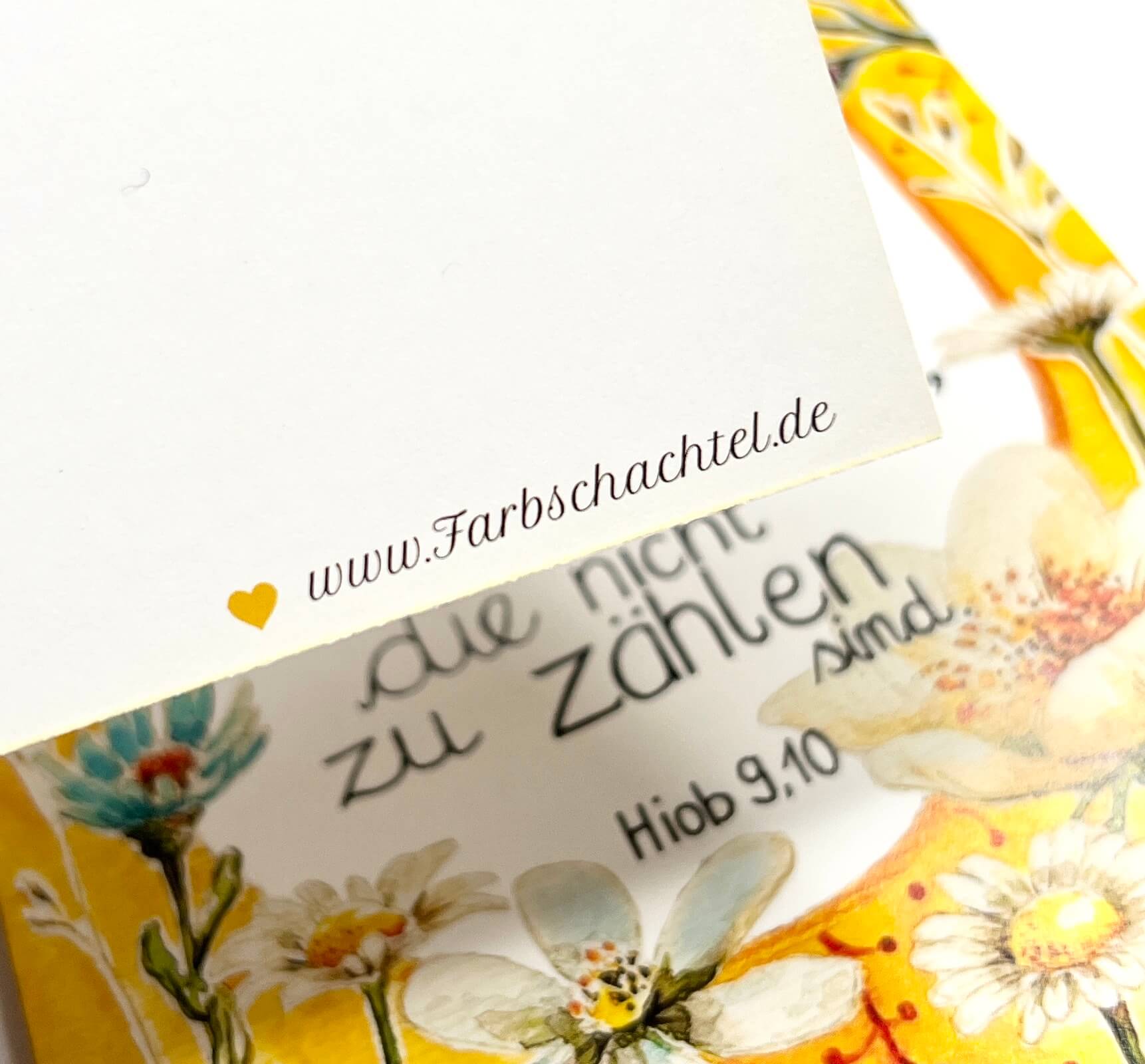 Rückseite: weiß mit einem zurückhaltenden www.Farbschachtel.de